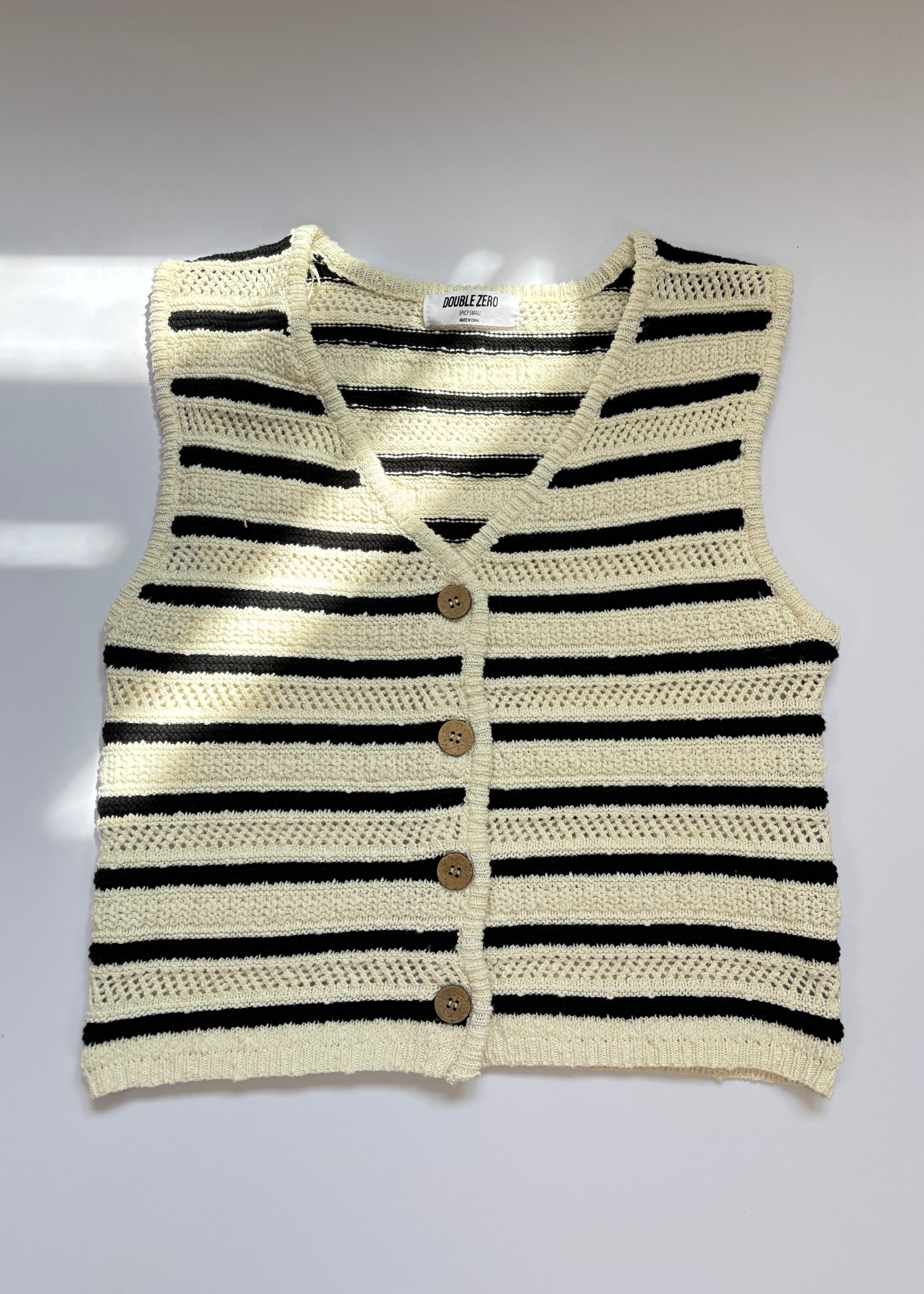 Meet your new layering obsession—Buttoned Up Babe. This ultra-cozy knit vest features playful black and cream stripes, chunky wooden buttons, and the perfect balance of classic and cool. Whether you throw it over a tee, a blouse, or wear it solo, she’s here to elevate your outfit without trying too hard.