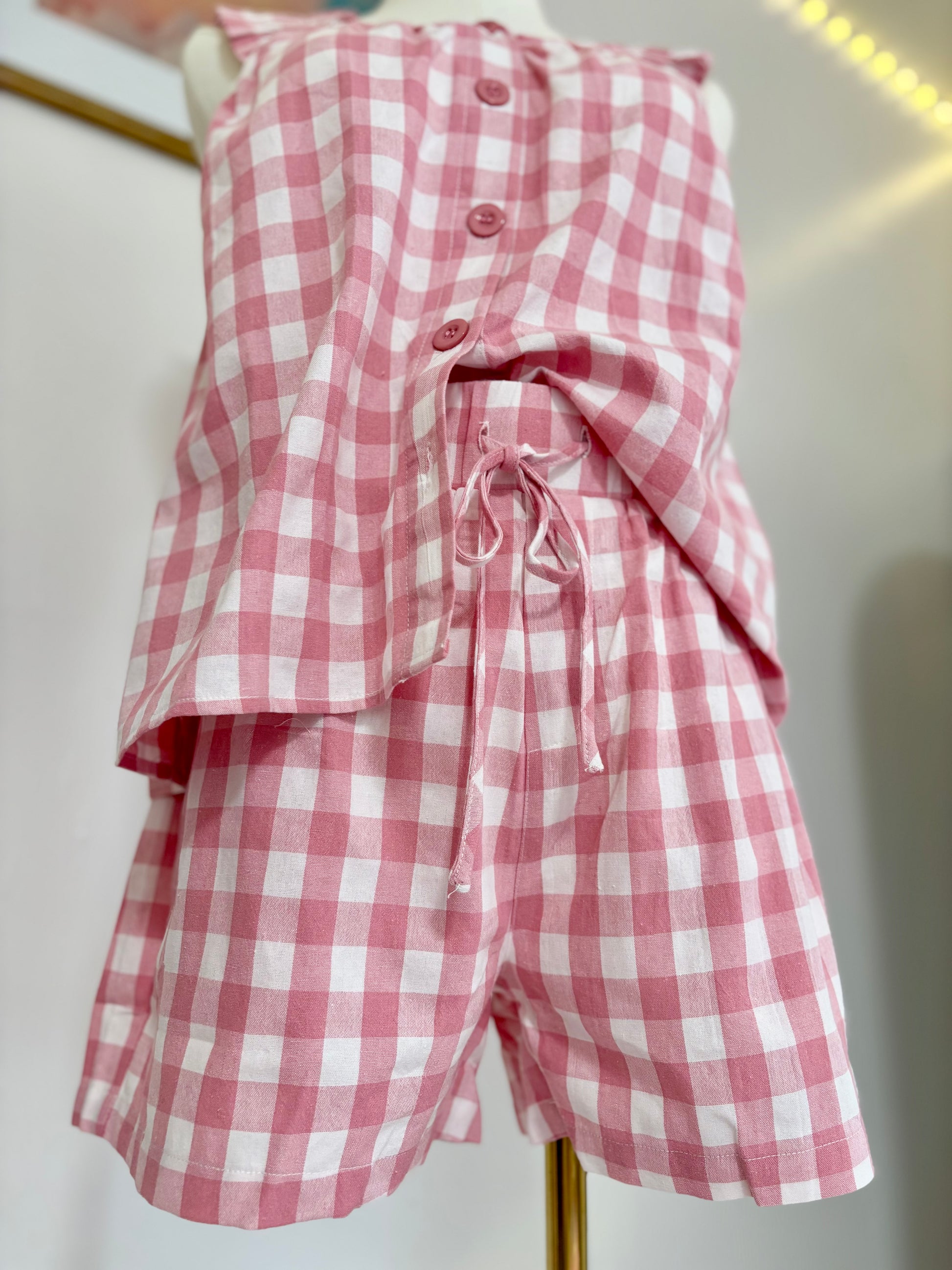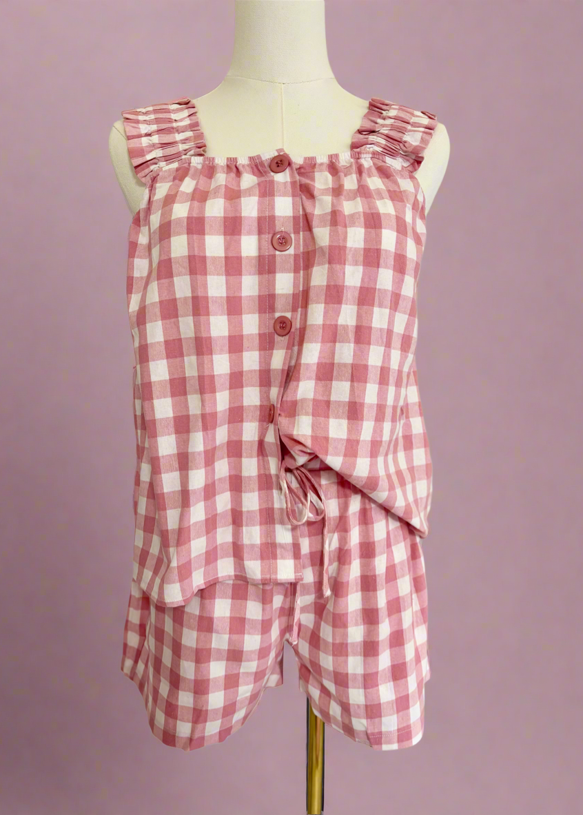 Meet your new go-to for lounging in style — the Grace Gingham Set is the perfect blend of charm and comfort. Crafted from 100% breathable cotton, this two-piece set features a soft pink and white gingham print that brings just the right amount of sweetness to your downtime.